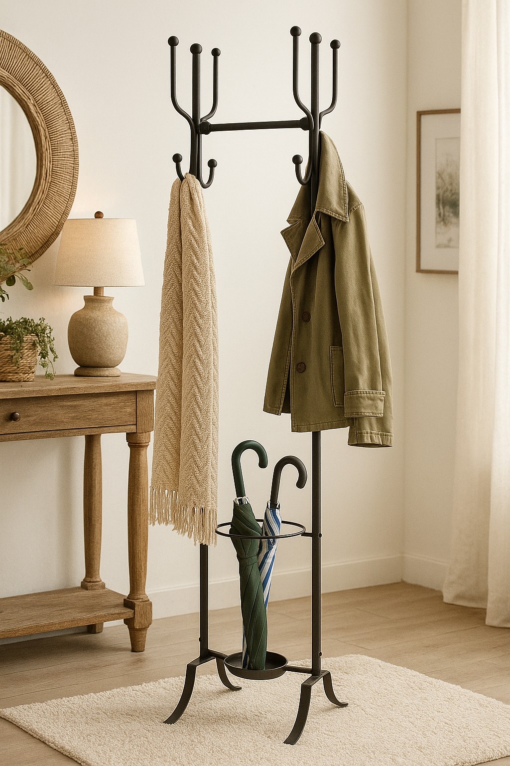 Dieser Garderobenständer aus Metall ist die ideale Kombination aus Design, Stabilität und Funktionalität – ein echter Blickfang für jedes Zuhause.