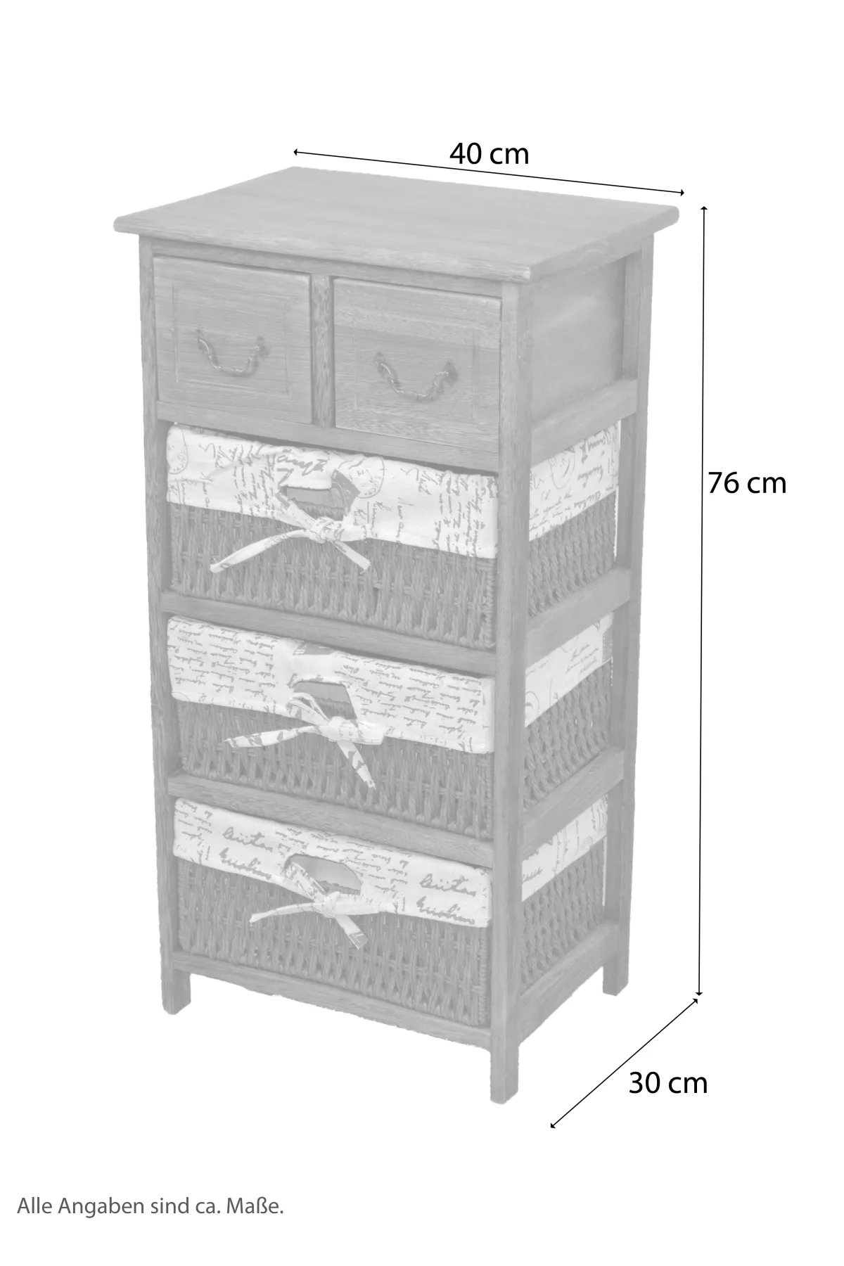 Innenmaße Körbe: ca. B. 30 × T. 22 × H. 14 cm