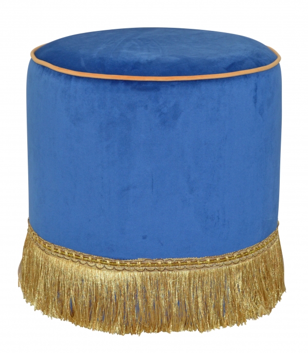 Sitzfläche mit einen farblich abgesetzten Keder kombiniert. Zusätzlich mit einer trendigen, goldfarben Fransenborte unten gearbeitet.