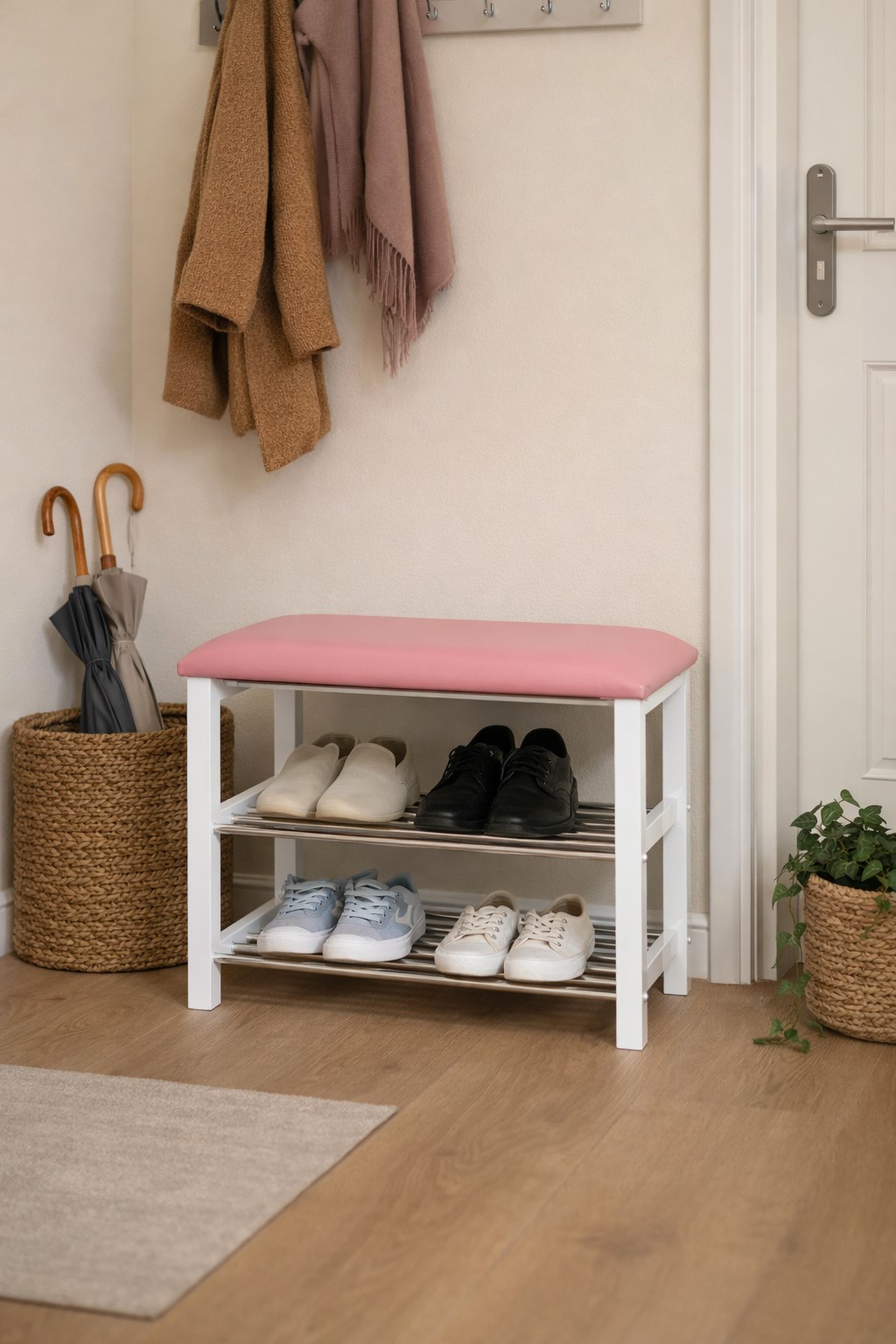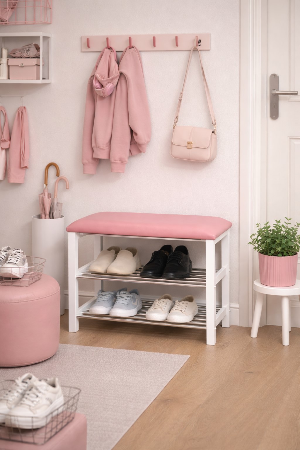 Diese moderne Schuhbank überzeugt durch ihr trendiges Design, hohe Stabilität und praktische Ablageflächen. Eine stilvolle Lösung für alle, die Komfort, Ordnung und modernes Wohnen miteinander verbinden möchten.
