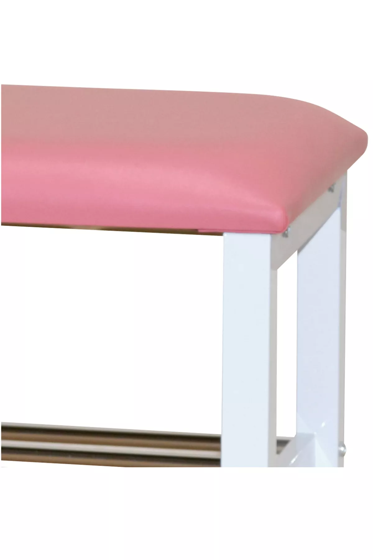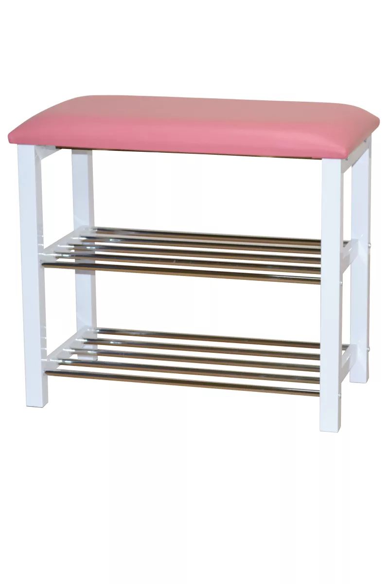 Diese moderne und trendige Sitzbank vereint stilvolles Design mit praktischer Funktionalität und ist die perfekte Ergänzung für Flur, Diele oder Schlafzimmer. Die Kombination aus rosa Sitzkissen, weiß pulverbeschichtetem Metallgestell und verchromten Gitterablagen sorgt für einen frischen, zeitgemäßen Look – ideal für junge, designaffine Wohnkonzepte.