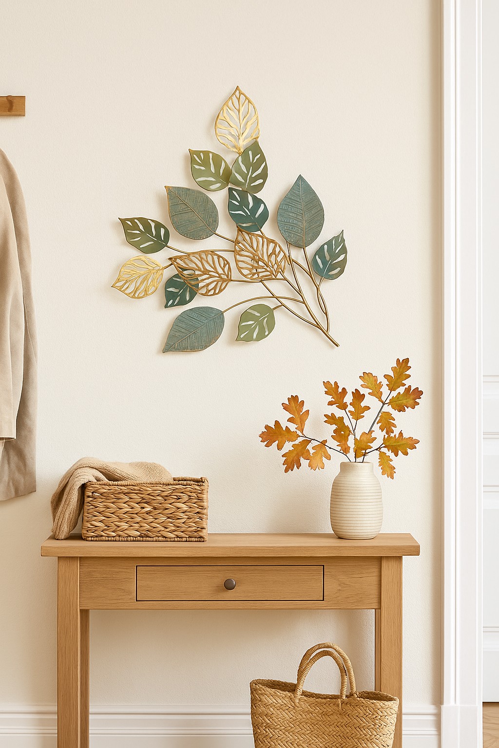 Durch die strukturierte Oberfläche und das detailreiche Blätter-Design entsteht eine faszinierende 3D-Optik, die jedem Raum mehr Tiefe und Charakter verleiht. Ob im Wohnzimmer, Flur, Schlafzimmer oder Essbereich – dieser Wandbehang ist ein eleganter Blickfang, der Ihre Einrichtung harmonisch ergänzt.