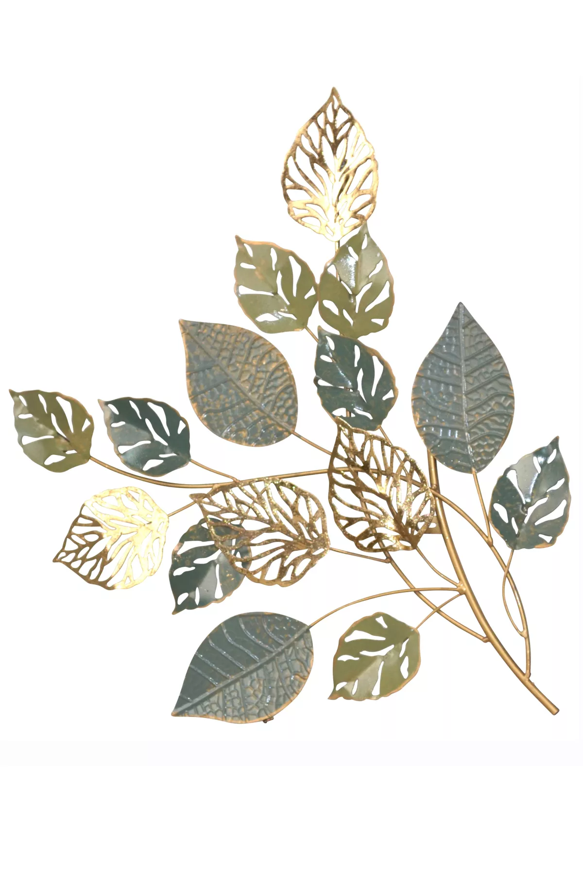 Diese stilvolle Wanddeko aus Metall ist ein echtes Highlight für alle, die ihr Zuhause mit einem Hauch von Natur und Eleganz verschönern möchten. Der kunstvoll gearbeitete große Zweig ist mit zahlreichen filigranen Blättern in Grün- und Goldtönen verziert und erinnert an die warme Atmosphäre eines herbstlichen Gartens.