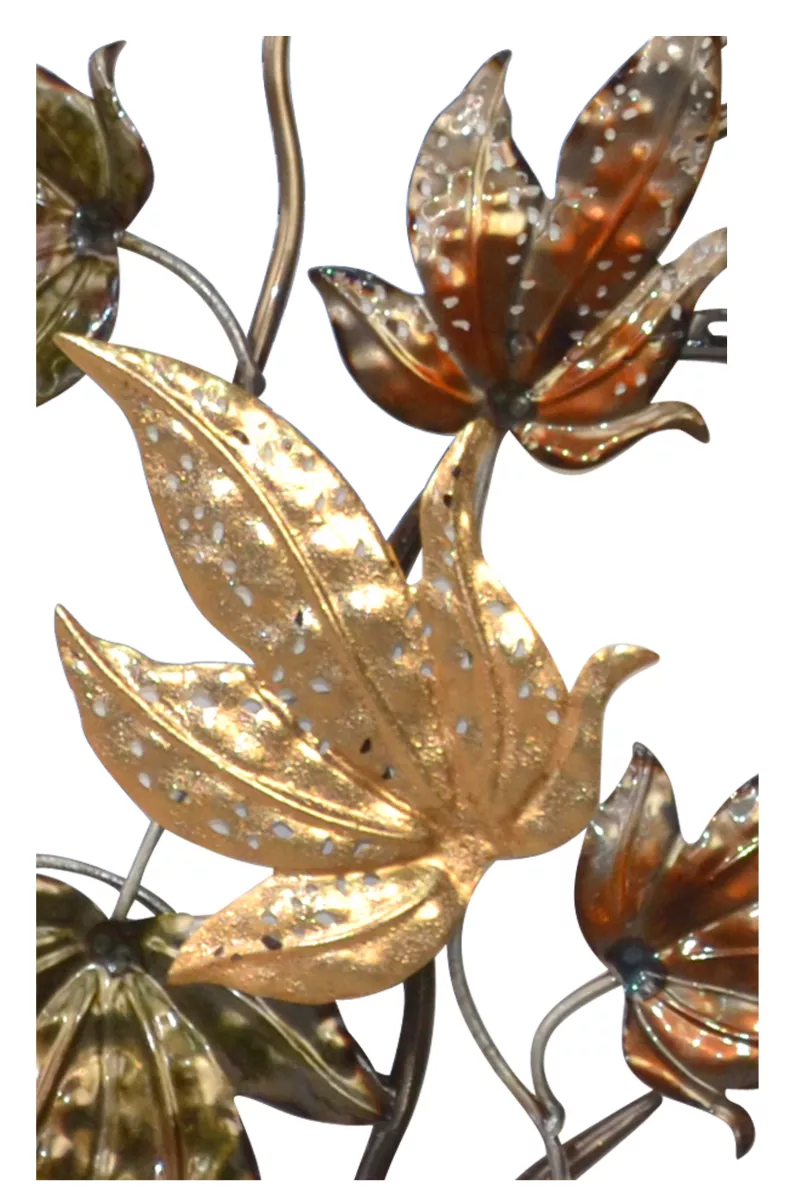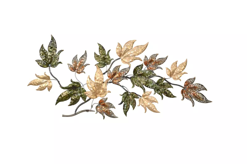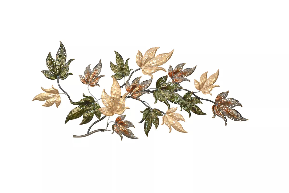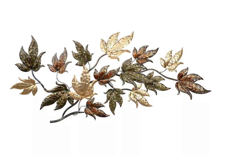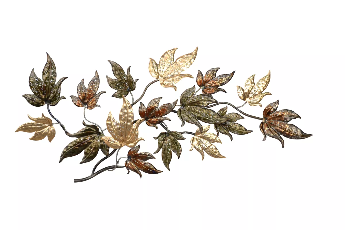 Verleihen Sie Ihren Räumen einen Hauch von natürlicher Eleganz mit dieser hochwertigen Wanddekoration aus Metall. Das kunstvoll gestaltete Ahornblatt-Arrangement begeistert durch seine unterschiedlich großen, harmonisch angeordneten Blätter, die in warm schimmernden Metallic-Tönen von Gold, Bronze und Kupfer erstrahlen. Jedes Blatt wurde fein ausgearbeitet, um Lichtreflexe auf faszinierende Weise einzufangen und Ihrer Wand Tiefe sowie Charakter zu verleihen.