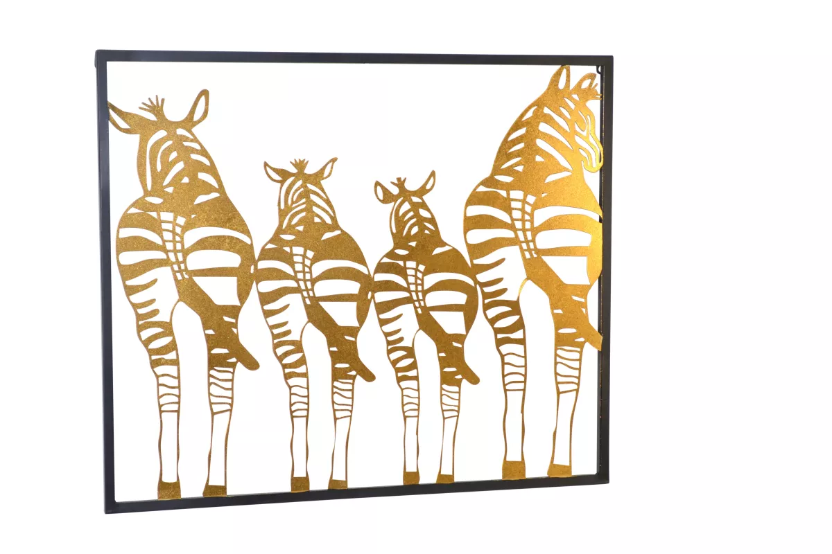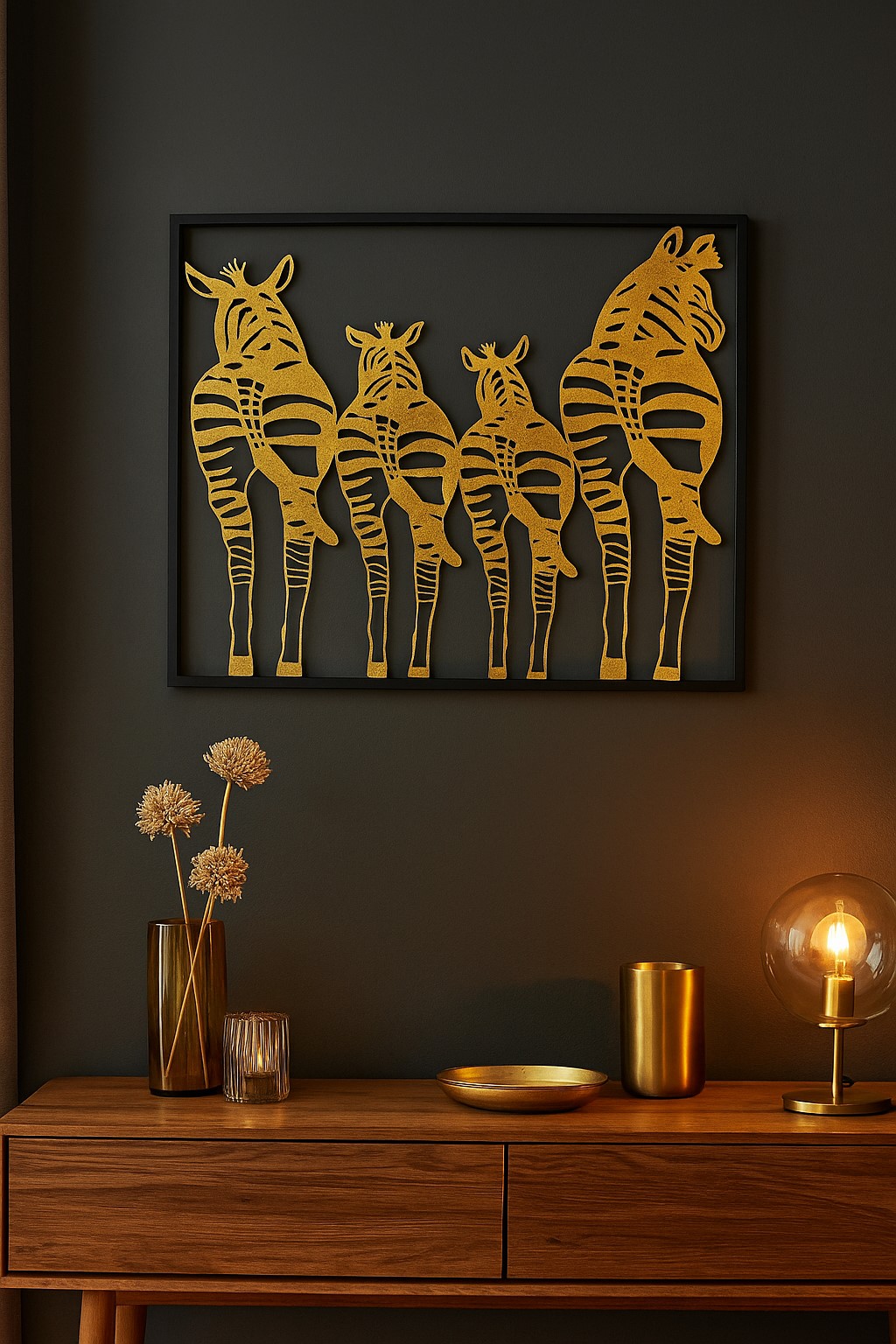 Edles Design: Abstrakte Zebrafamilie in goldfarbener Lackierung – ein eleganter Blickfang.