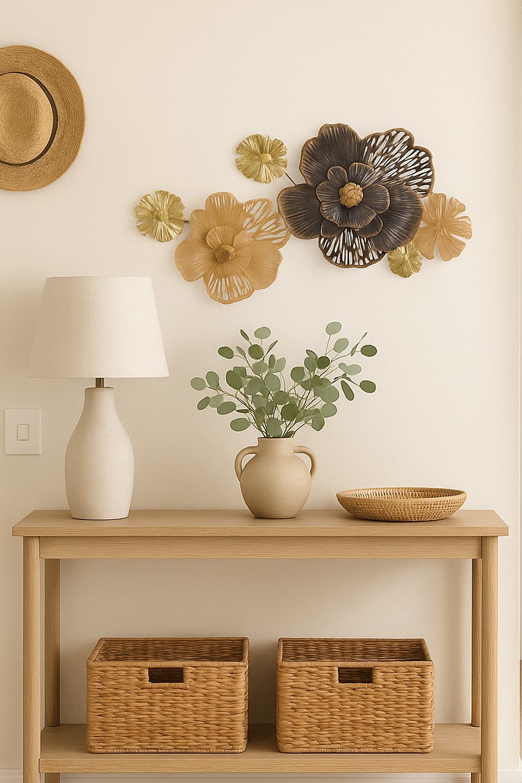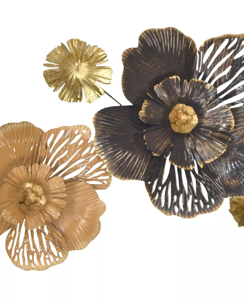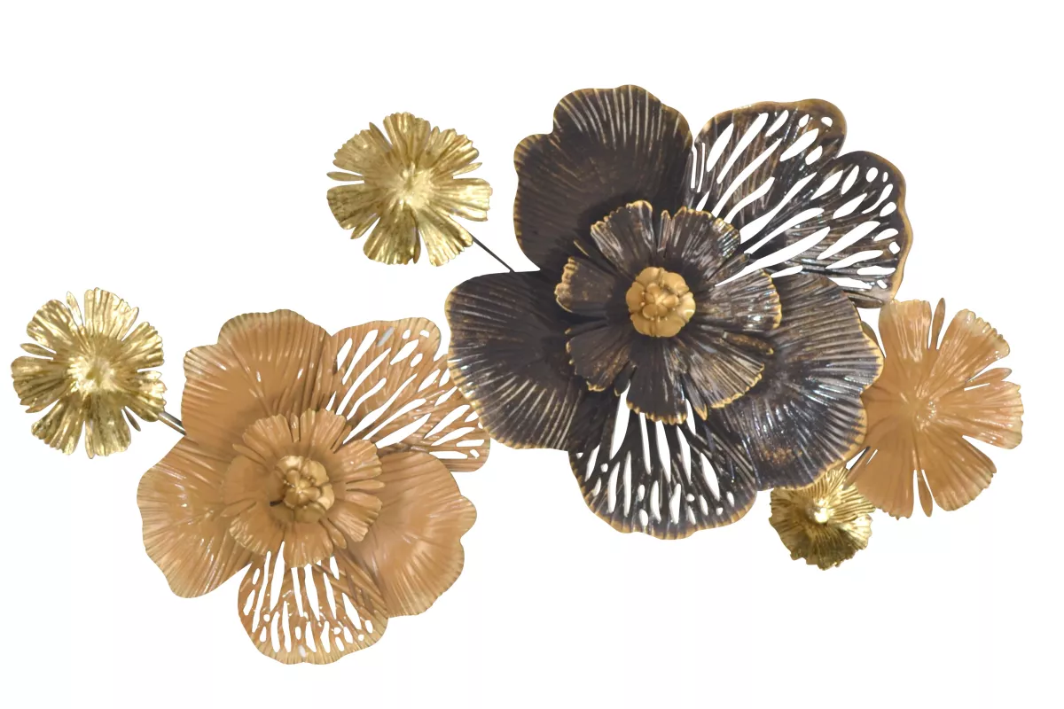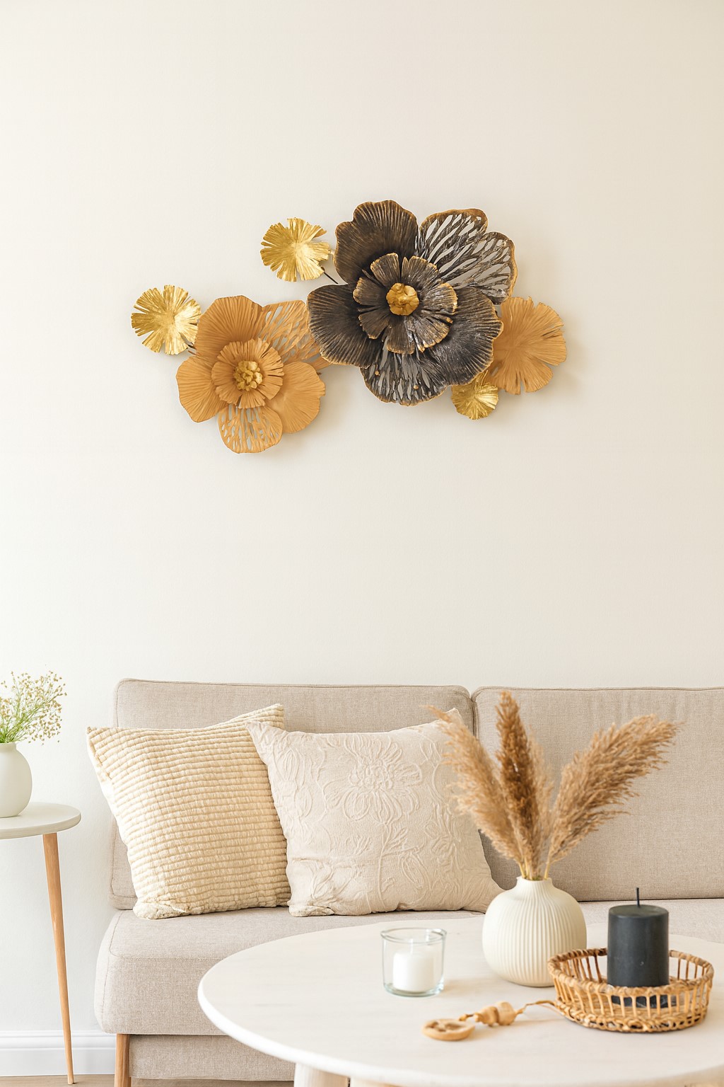 Verleihen Sie Ihrem Zuhause einen Hauch von Luxus und Stil mit dieser exklusiven Wanddekoration aus Metall. Die kunstvoll gearbeiteten Blüten in verschiedenen Größen und Farben – gold, beige und anthrazitgrau lackiert – schaffen ein harmonisches, modernes Gesamtbild. Ob im Wohnzimmer, Flur, Schlafzimmer oder Essbereich – dieses Designobjekt setzt edle Akzente an jeder Wand.