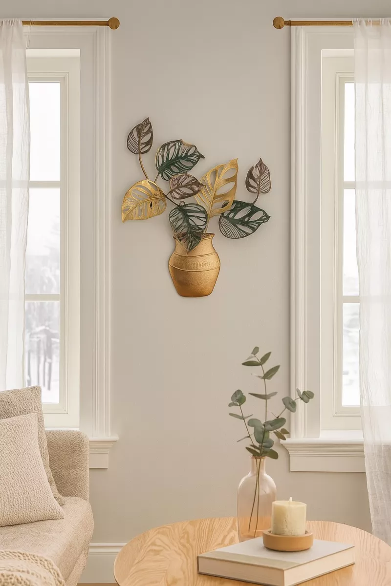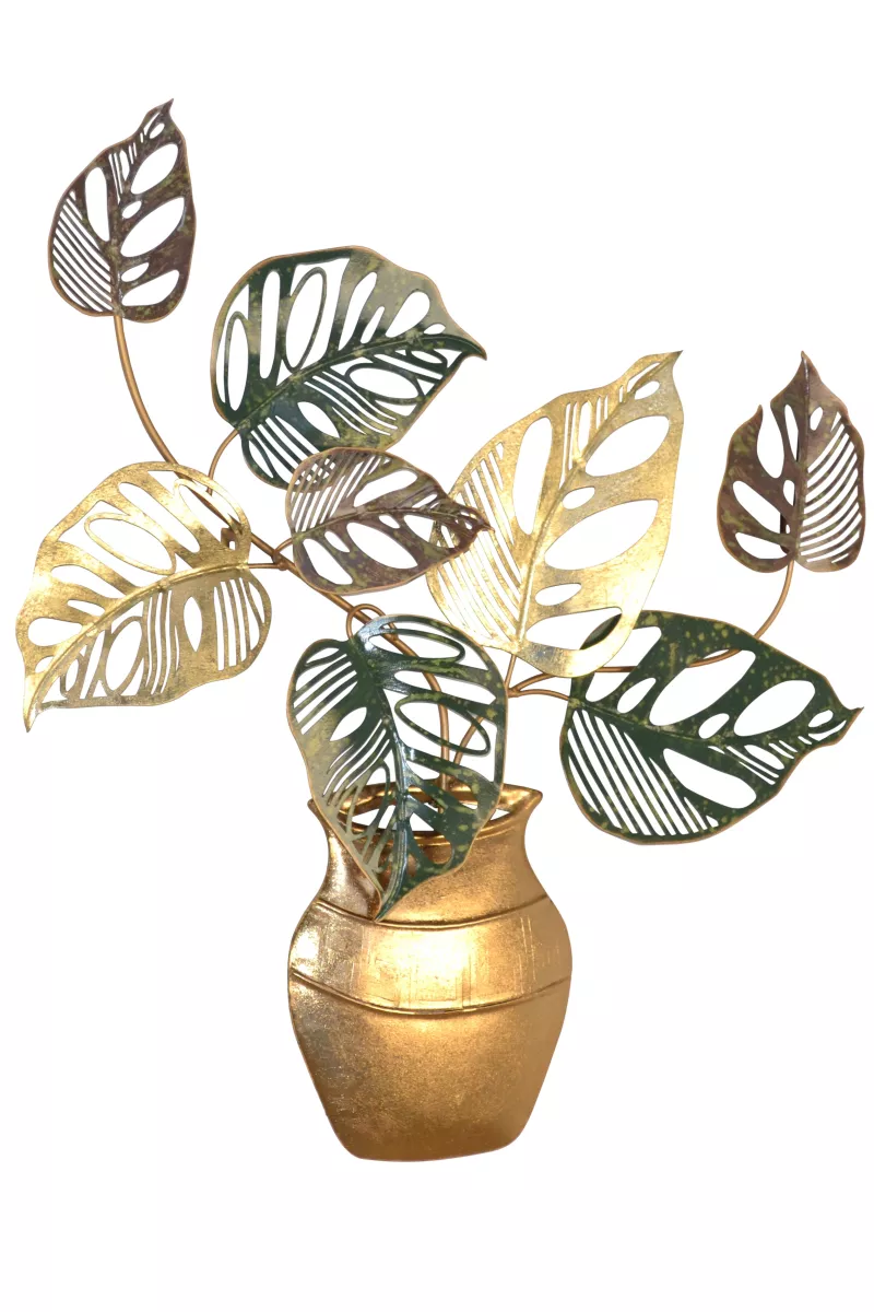 Die Wanddekoration „Pflanze mit Topf“ überzeugt durch ihr einzigartiges Design aus hochwertigem Metall. In edlen Gold- und Grüntönen lackiert, vereint sie Eleganz mit trendigem Naturflair. Mit ihrem großzügigen Format ist sie ein echter Blickfang – ob im Wohnzimmer, Flur oder Schlafzimmer.