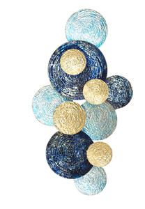 Exklusive Wanddekoration aus Metall – Creme, Blau & Gold – Modernes Wandobjekt 120x60 cm